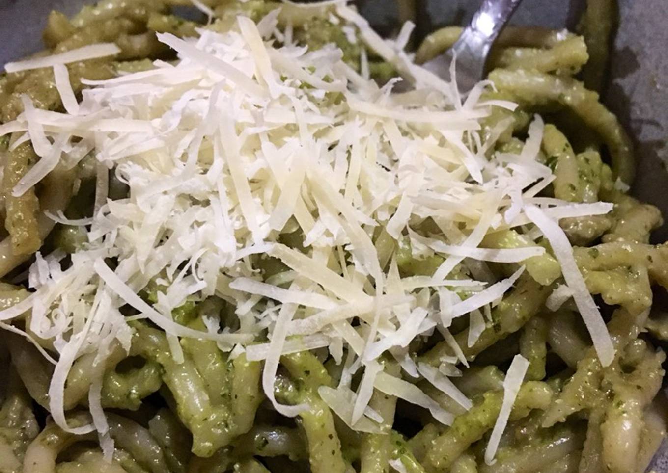 Espagueti con pesto (albahaca y semilla de girasol)