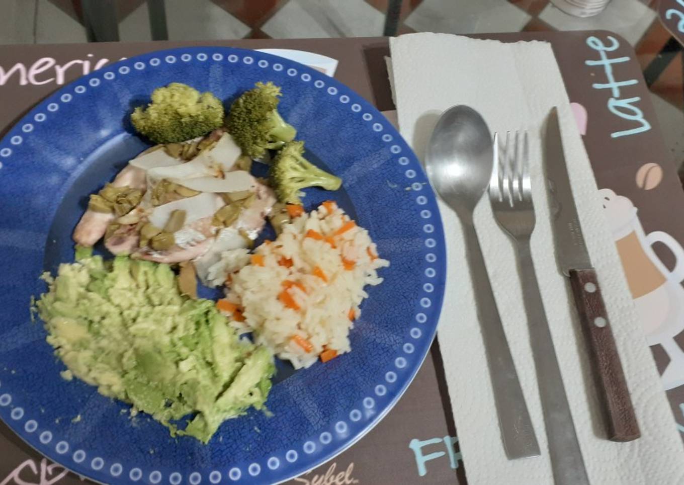 - Listo!❤ se puede acompañar con un poco de aguacate machacado con sal🐟🧅🍚🥕🥦🥑