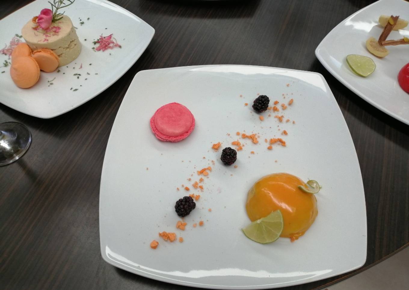 - Decorar nuestro platillo junto con los macarrones. Y nuestro mousse estaría prácticamente listo.